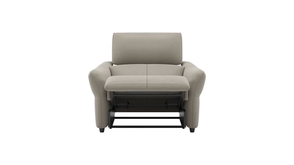Vervolledig je Agello-sofa met deze fauteuil, een superdegelijke, gezellige en comfortabele éénzit die, doordat de hij laag aan de grond staat, qua uiterlijk nét wat meer gewicht krijgt. Hij is beschikbaar in een prachtige keuze van stoffen en leer, met een breed scala aan kleuren, zorgvuldig geselecteerd om de sofa optimaal tot zijn recht te laten komen. Door een 3-motorig relaxsysteem kan je hoofdsteun, lendensteun en voetensteun onafhankelijk bewegen. De fauteuil Agello meet 90 cm hoog, 104 cm diep en heeft een zithoogte van 45 cm en is 110 cm breed inclusief armleuningen.