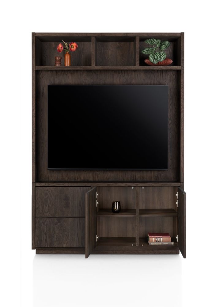 Gijon, tv-kast met opzet 150 cm – 2-deuren + 2-laden + 3-niches met plint