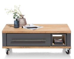 Salontafel Ravello in basaltkleur is een stijlvolle en praktische toevoeging aan je zithoek. Het massief eiken blad geeft de tafel een warme uitstraling, terwijl het onderstel van eikenfineer zorgt voor een stevig en verfijnd geheel. Dankzij de platinumlak heeft Ravello een matte finish met extra bescherming tegen dagelijks gebruik. Deze salontafel maakt deel uit van een compleet woonkamerprogramma. Liever een lichtere kleur? Ravello is ook verkrijgbaar in de kleur dune.