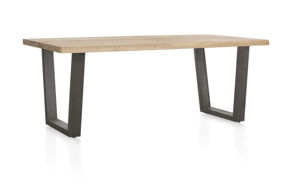 Deze opvallende eetkamertafel komt uit de Metalox collectie van Henders & Hazel. Bijzonder is het eikenhouten tafelblad met boomschorsrand. Opvallend zijn de metalen poten in V-vorm. Samen vormen ze een fraaie eigentijdse eetkamertafel met een vleugje vintage.