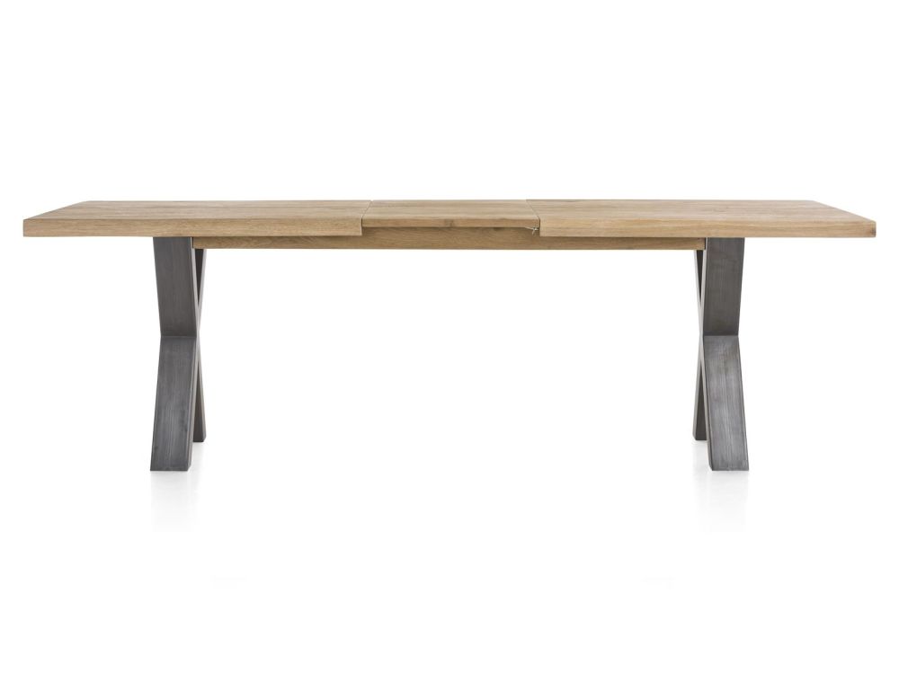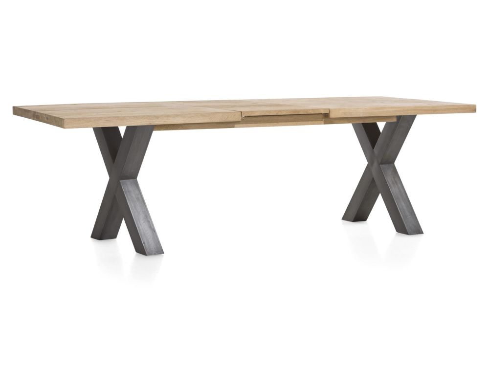 Deze handige uitschuifbare eetkamertafel is afkomstig uit de Metalox collectie van Henders & Hazel. De tafel heeft een stoere robuuste uitstraling. Opvallend is het tafelblad met boomschorsrand, dat zie je niet zo vaak. De metalen tafelpoten in X-vorm zorgen voor de finishing touch. Deze tafel is 190 x 100 cm als hij is ingeschoven, uitgeschoven komt daar 50 cm bij.