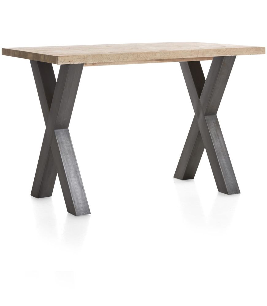 Deze bartafel van 130 x 90 cm uit de Metalox collectie van Henders & Hazel is net een beetje anders dan anders. Dat komt vooral door het houten tafelblad met boomschorsrand. De metalen tafelpoot in X-vorm zorgt voor de finishing touch en geeft deze bartafel een stoer en eigentijds design.