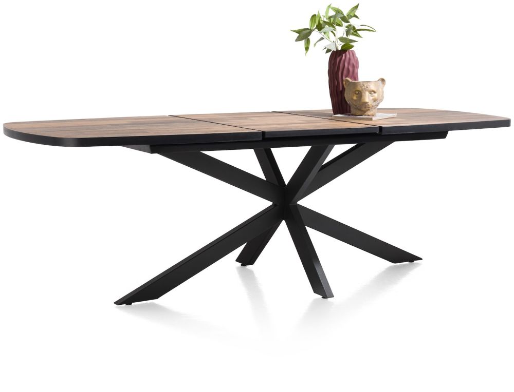 Deze uitschuifbare ovale eettafel uit de Bahia-collectie is zowel praktisch als stijlvol. Ze meet 190×110 cm en kan eenvoudig worden verlengd met 60 cm dankzij een gebruiksvriendelijk systeem. De Bahia-collectie biedt diverse modellen en afmetingen, waarbij je als klant volledig je eigen look bepaalt. Kies uit twee natuurlijke kleurtinten – oak natural vintage of driftwood – en combineer met een zwart metalen onderstel naar wens: een centrale poot, vier rechte poten of karaktervolle V-poten. Zo stel je een tafel samen die perfect aansluit bij jouw interieur.