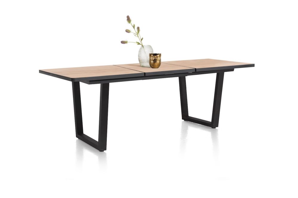 Naast de rechthoekige en ovale bartafel, bieden we in de Avalox-collectie ook een uitschuifbare bartafel aan. Deze is verkrijgbaar in twee formaten; dit model meet 190×98 cm. De tafel kan worden verlengd met 60 cm. Het tafelblad is vervaardigd uit Primo Laminato en is beschikbaar in de houtkleuren driftwood of oak natural vintage (afgebeeld). Ook voor het onderstel heb je keuze uit twee zwarte metalen varianten. Dit is de versie met een V-poot.