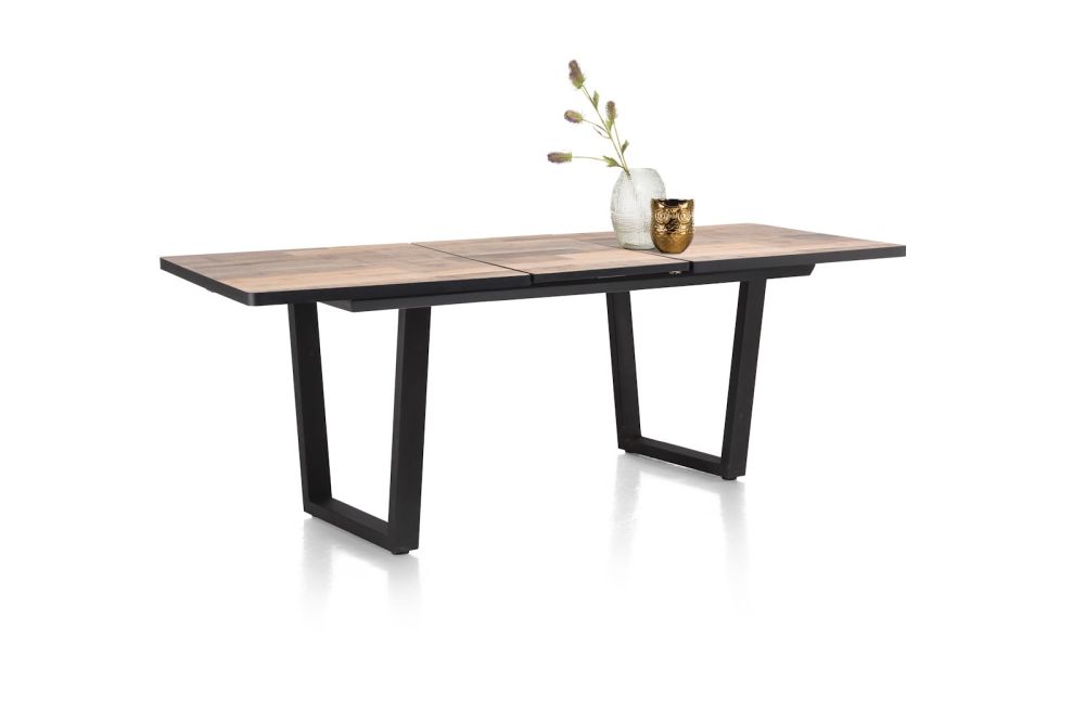 Deze uitschuifbare eettafel uit de Avalox-collectie is ideaal voor wie flexibiliteit zoekt in een compact interieur. In een handomdraai verleng je de tafel met 50 cm – handig wanneer je gasten ontvangt, maar niet continu een grote tafel nodig hebt. In gesloten toestand meet ze 160 x 98 cm. Het blad is gemaakt van Primo Laminato, een onderhoudsvriendelijk materiaal dat nauwelijks te onderscheiden is van echt hout, en is beschikbaar in twee houtkleuren. Deze uitvoering is afgewerkt in de tint driftwood en staat op stoere zwarte metalen V-poten.