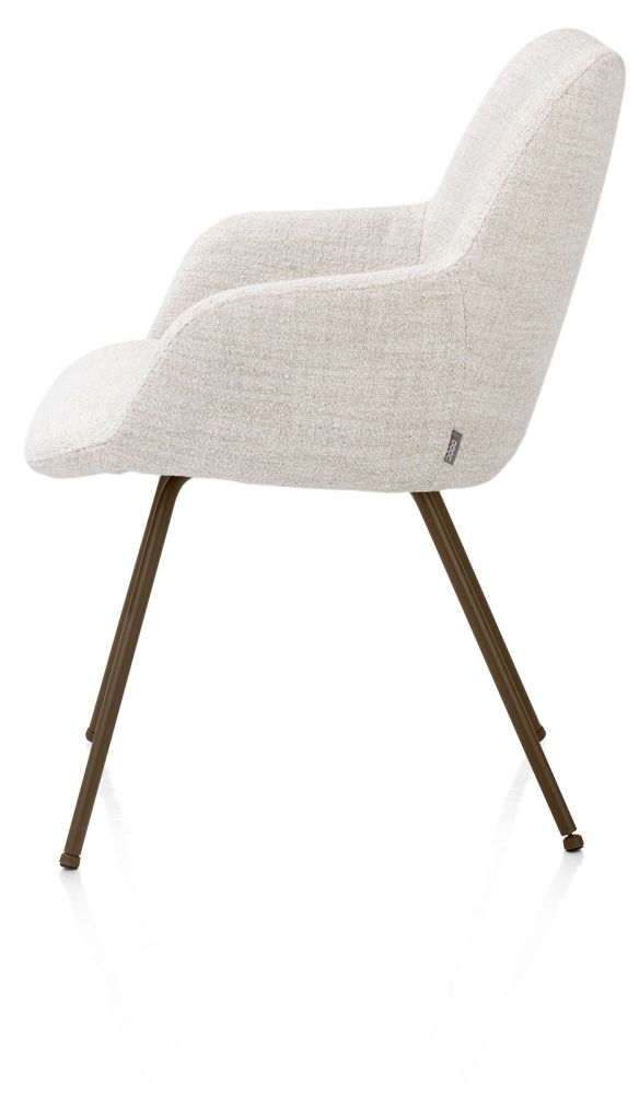 Maak kennis met MATS, een moderne armstoel met crèmekleurige bekleding en poten in de kleur steelbrown. MATS staat bekend om zijn ronde vormen. De metalen poten en zachte bekleding in stof Luton, geven hem een eigentijdse look. MATS leent zich om uren te tafelen dankzij zijn zachte zit en comfortabele armleuningen. Je schuift hem gemakkelijk onder de tafel. Kijk ook eens naar alle andere uitvoeringen waarin MATS verkrijgbaar is, zowel qua kleur als bekleding als onderstel.