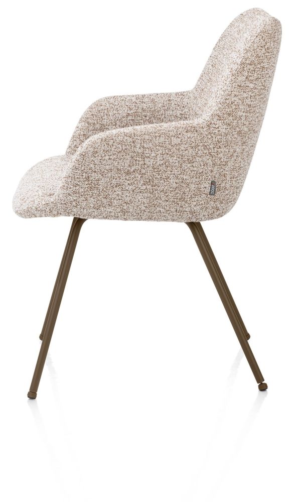 Met armstoel MATS haal je een stijlvolle en comfortabele zitplek in huis. Deze koperkleurige beauty is bekleed met de zachte stof Luton en staat op slanke poten in de kleur steelbrown. De ronde vormgeving, comfortabele armleuningen en uitnodigende zit maken MATS dé armstoel om heerlijk lang te tafelen. Of je nu houdt van modern, warm of eigentijds: MATS komt prachtig tot zijn recht in elke eetkamer. Hij is verkrijgbaar in verschillende kleuren en onderstellen.