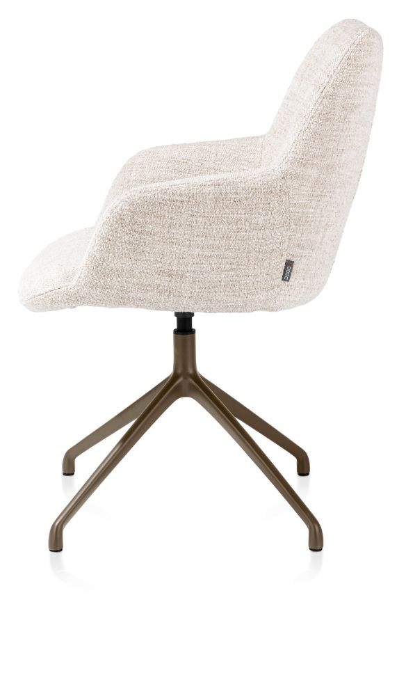 Mats, armstoel aluminium frame 4-poots – draaibaar steelbrown – stof Luton – Creme