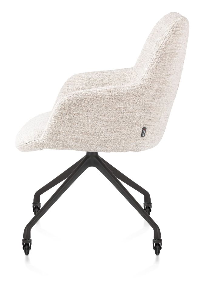Mats, armstoel aluminium frame wielen rough off black – stof Luton – Creme