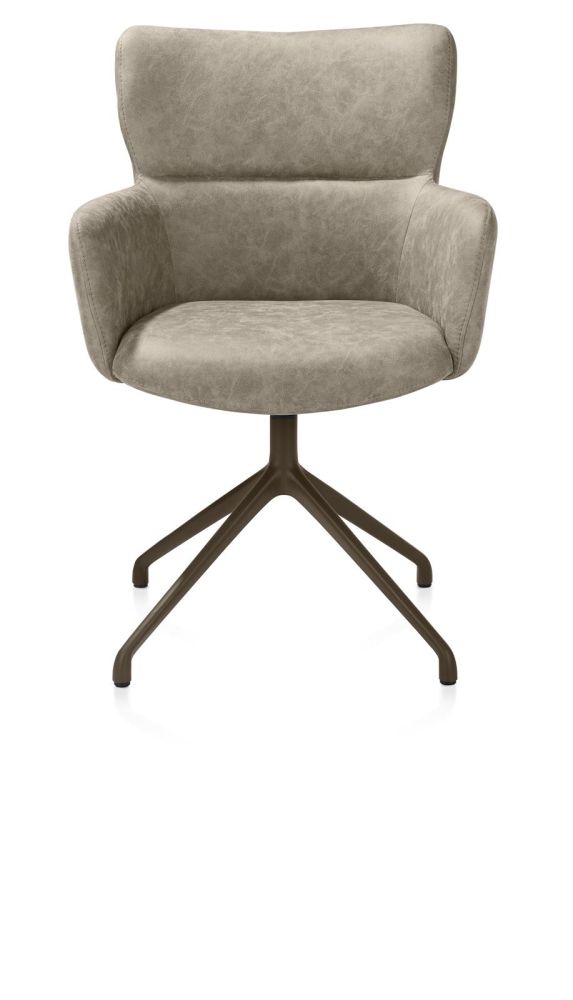 Sage, armstoel draaibaar – steelbrown – stof Oregon – beige