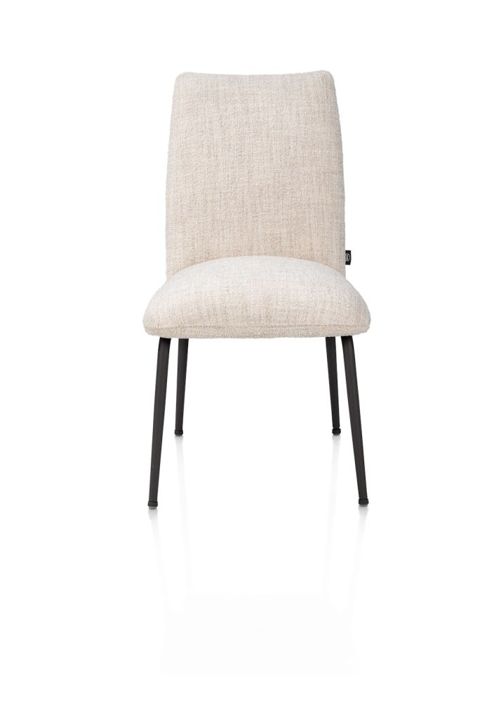 Bovina, eetkamerstoel – stof Luton + nosag – frame rough off black – Creme