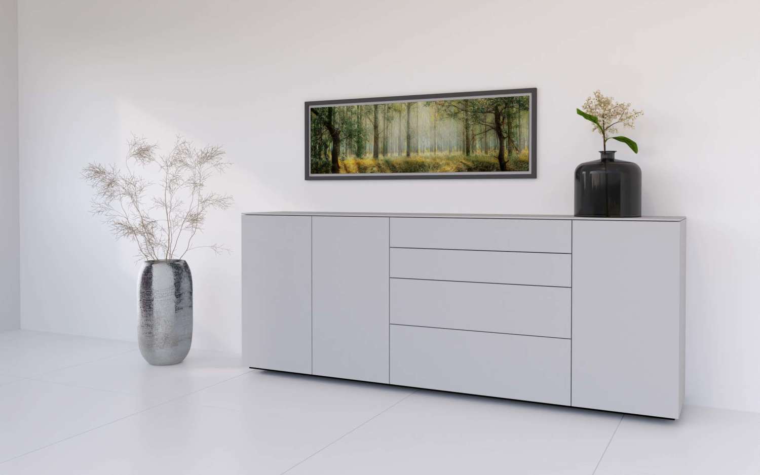 Met het grote aantal elementen, materialen zoals gladde matlak, handgepolijste hoogglanslak, glas, keramiek, mooi natuurlijk eikenhoute of amerikaans noten, 16 standaard lakkleuren worden deze meubelen geheel afgestemd op uw behoeften en smaak.
