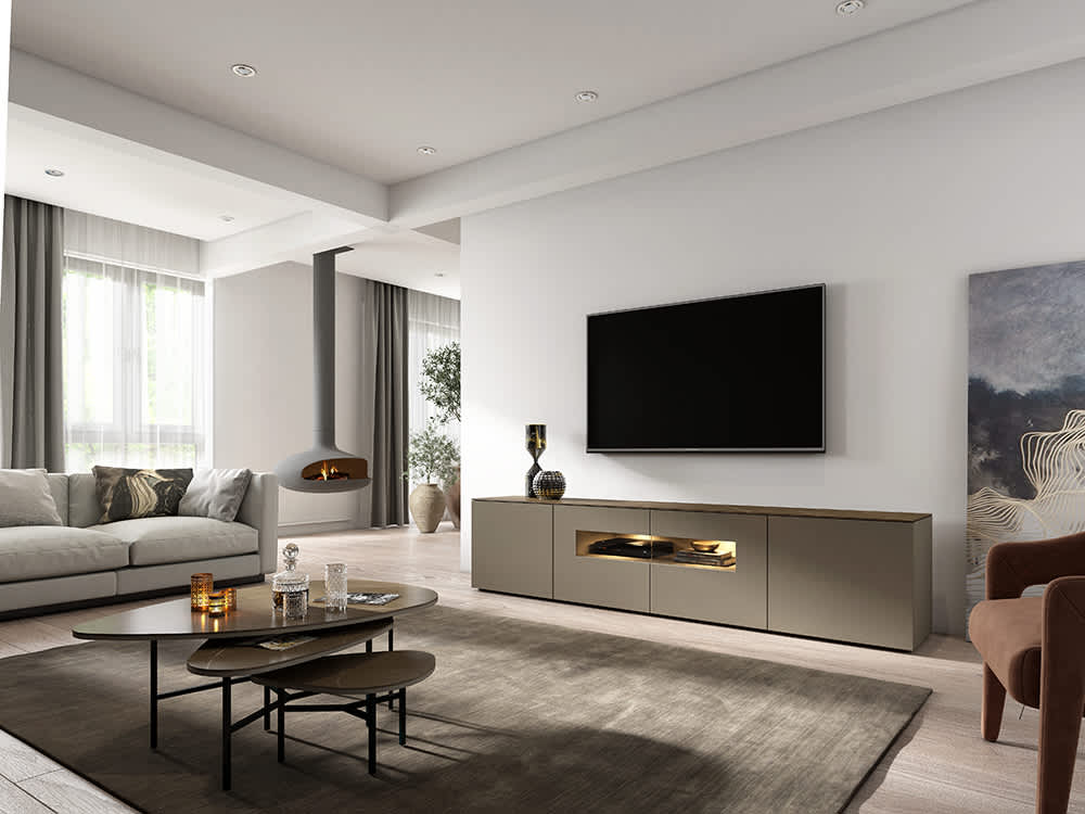 Met het grote aantal elementen, materialen zoals gladde matlak, handgepolijste hoogglanslak, glas, keramiek, mooi natuurlijk eikenhoute of amerikaans noten, 16 standaard lakkleuren worden deze meubelen geheel afgestemd op uw behoeften en smaak.
