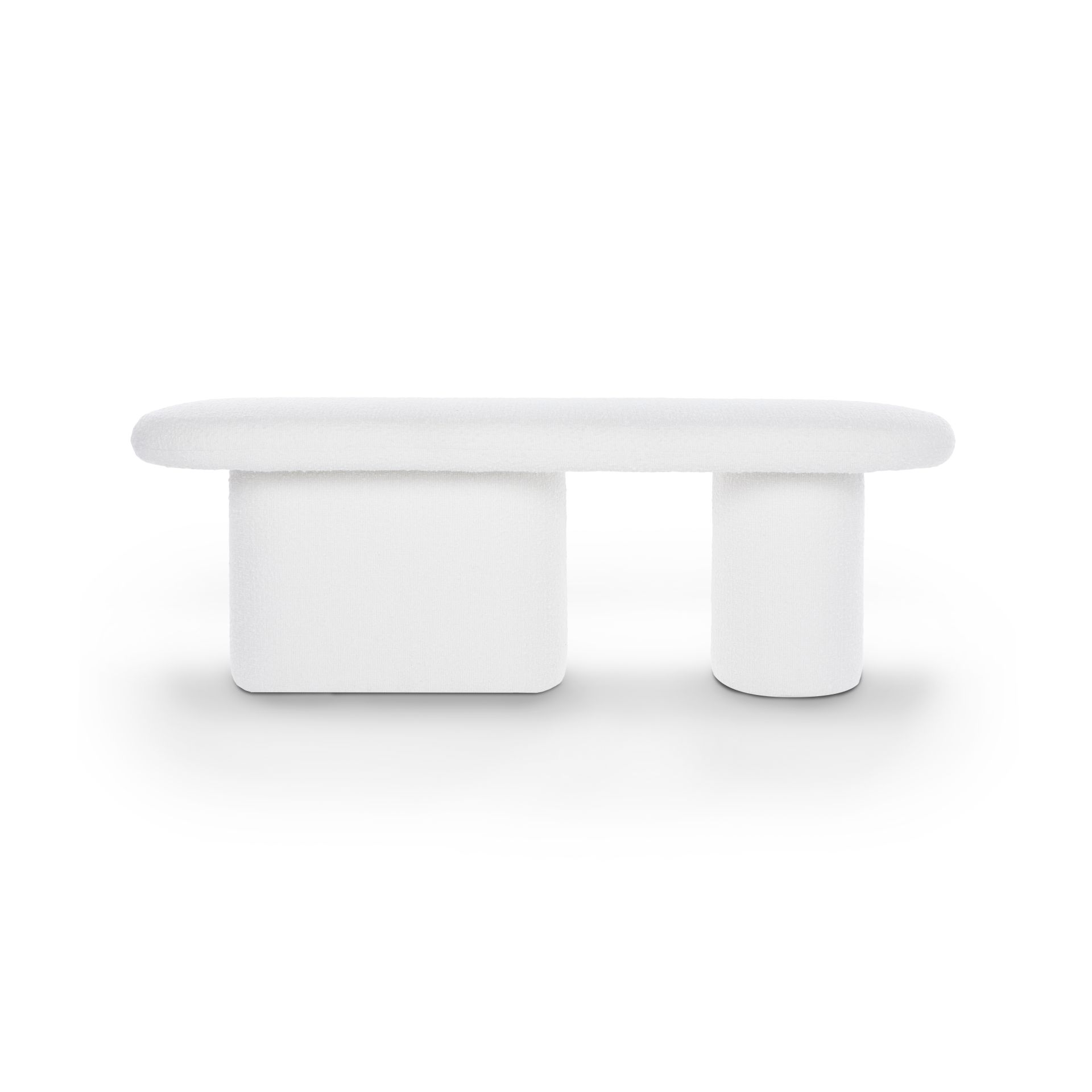 Een sculpturale zitbank die net zo goed in een kunstgalerij past als in je slaapkamer. De ARCH bench combineert zachte rondingen met een verrassend onderstel in luxueuze witte bouclé. Ideaal als stijlvol accent aan het voeteneinde van je bed of gewoon om naar te blijven kijken.