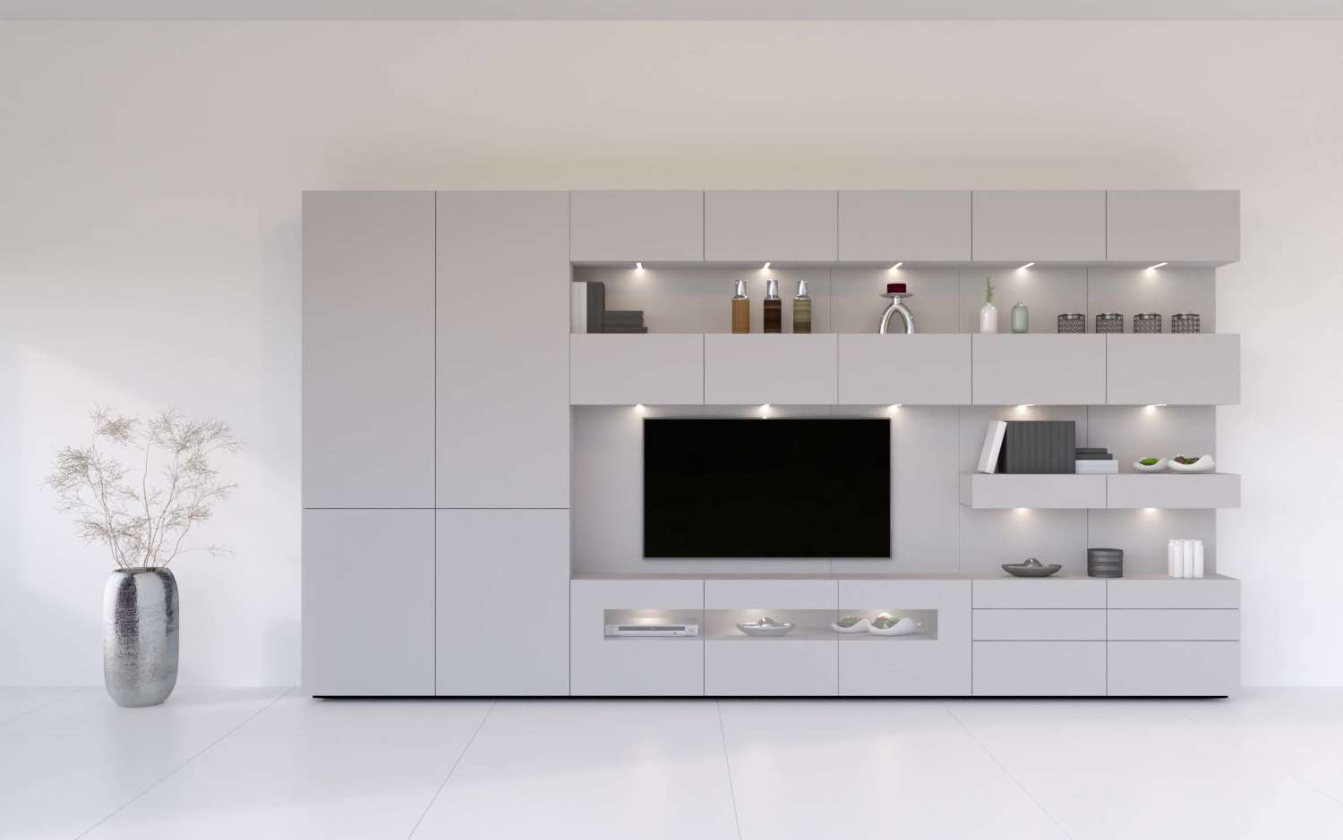 Met het grote aantal elementen, materialen zoals gladde matlak, handgepolijste hoogglanslak, glas, keramiek, mooi natuurlijk eikenhoute of amerikaans noten, 16 standaard lakkleuren worden deze meubelen geheel afgestemd op uw behoeften en smaak.